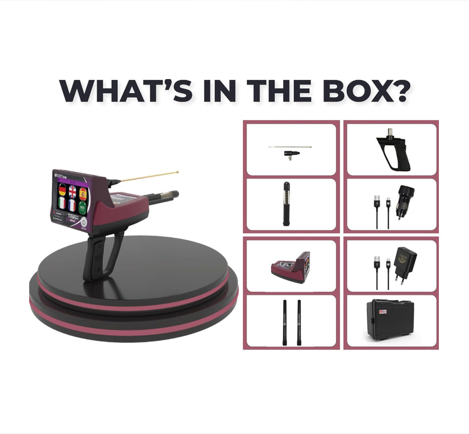 It incorporates modern and unique technology for explorers and enthusiasts, allowing you to search for gold, precious metals, hidden treasures, diamonds, and gemstones up to depths of 120 meters underground and a front range of 3000 square meters.