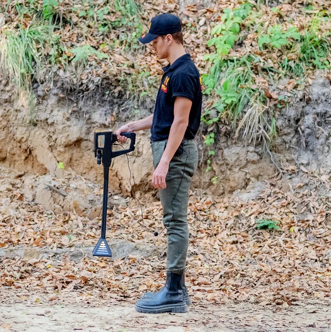 These waves intersect with magnetic field signals emitted by buried metal targets. A pair of antennas capture the reflected signals, which converted into digital signals.