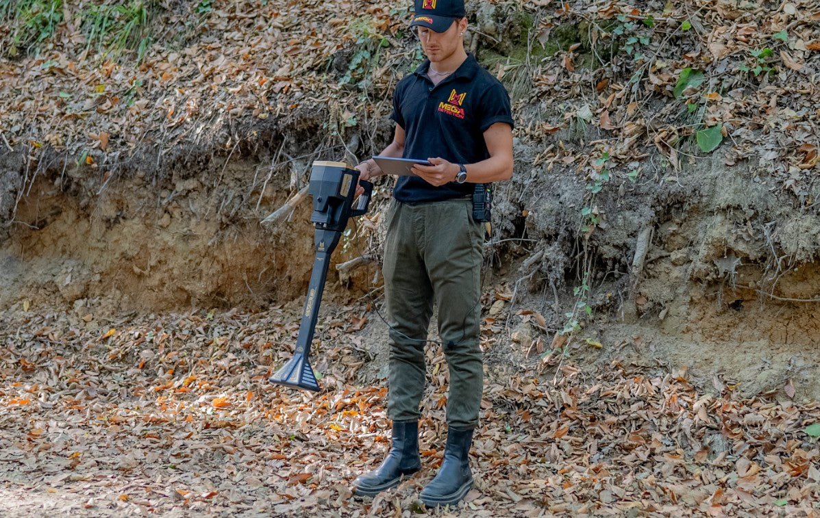 This advanced search system is capable of covering vast areas in a designated space, effectively identifying all types of buried metals with corresponding percentage values.