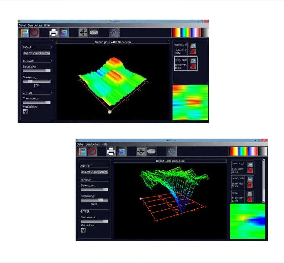 The Tero Vido 3D System is a 3D measuring device for the detection and precise localization of anomalies in the ground. It is based on newly developed and measuring technology from Tero Vido GmbH, Germany. One thing that makes the Tero Vido System quite special, besides the exact localization, is the deep penetration of the ground. Depending on the size of the object, significant depths of up to 18m can be reached.