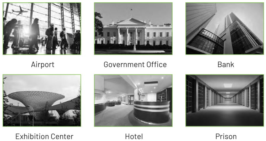 indicate precisely where metal is detected. - Automatically counts people and alarms