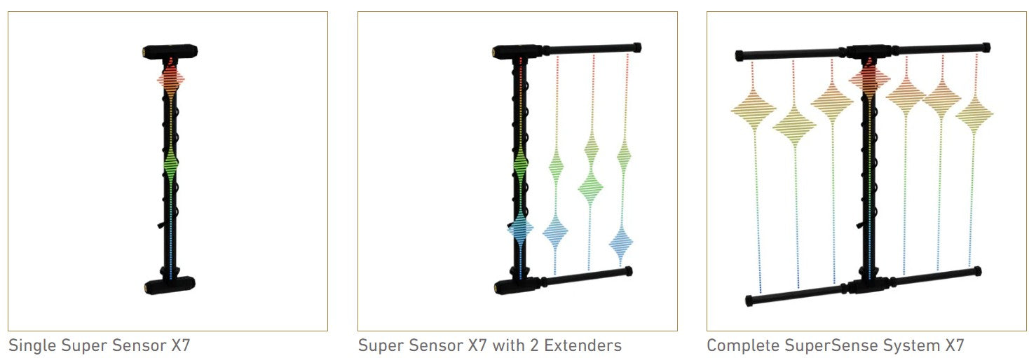 The 4 interchangeable Extenders offer flexible configuration options to match the scanning environment. Depending on the terrain and target area, users can attach two Extenders to one side or mount all four Extenders on both sides to set up the full SuperSense System X7. The OKM eXp 7000 Professional Plus easily adapts to the surroundings, ensuring efficient scans in any setting, whether using only the Super Sensor or the complete SuperSense System.