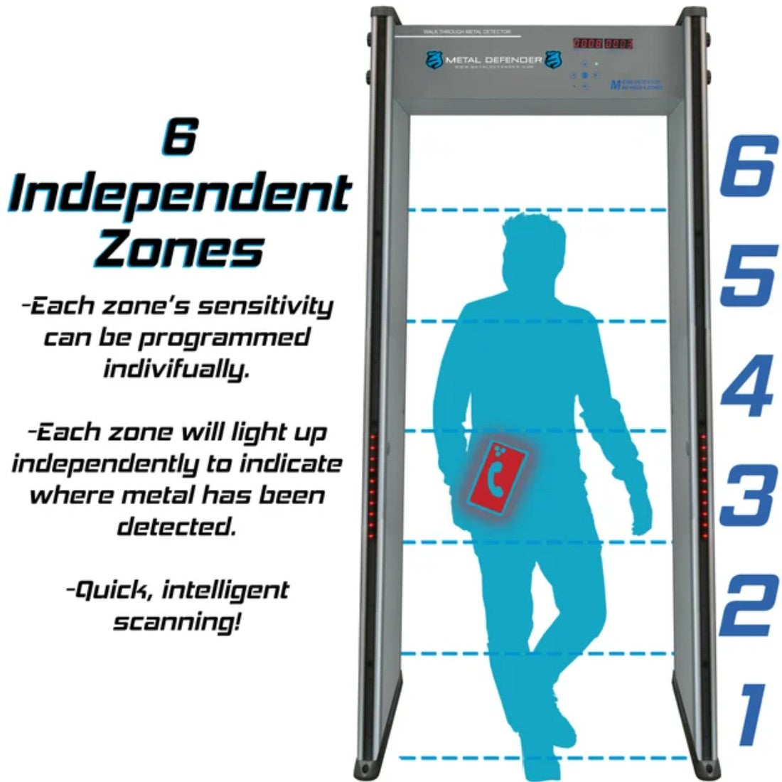 大多数 Metal Defender 型号都具有多区域检测功能,通常有10 个区域,可从头到脚进行精确的位置检测。