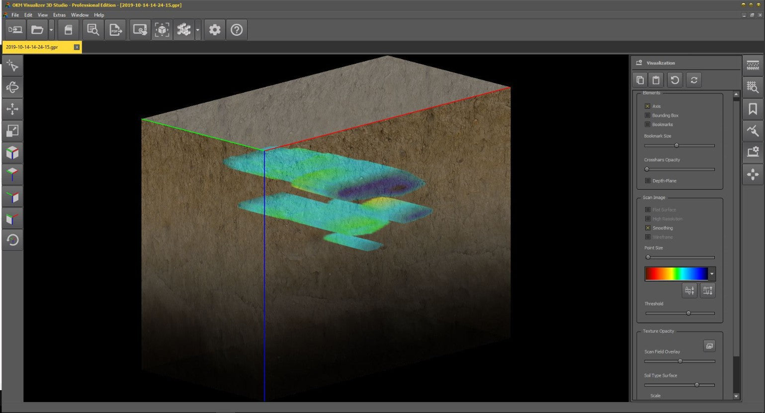 OKM Gepard GPR 在 Visualizer 3D Studio 中的扫描分析