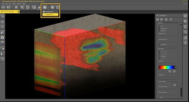 打开 GPR 测量后,主工具栏中会显示一个新按钮。您可以在这里切换 2D 和 3D 渲染视图。